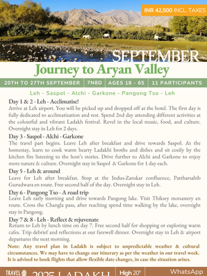 Our Ladakh trips for 2025 are priced at Rs. 42,500/- incl. taxes.