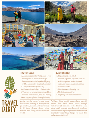This is an all inclusive price from Leh to Leh, so airport transfers, meals, travel, stays, experiences, permits are all covered. You just have to book your flights to and from Leh (Kushok Bakula) airport.